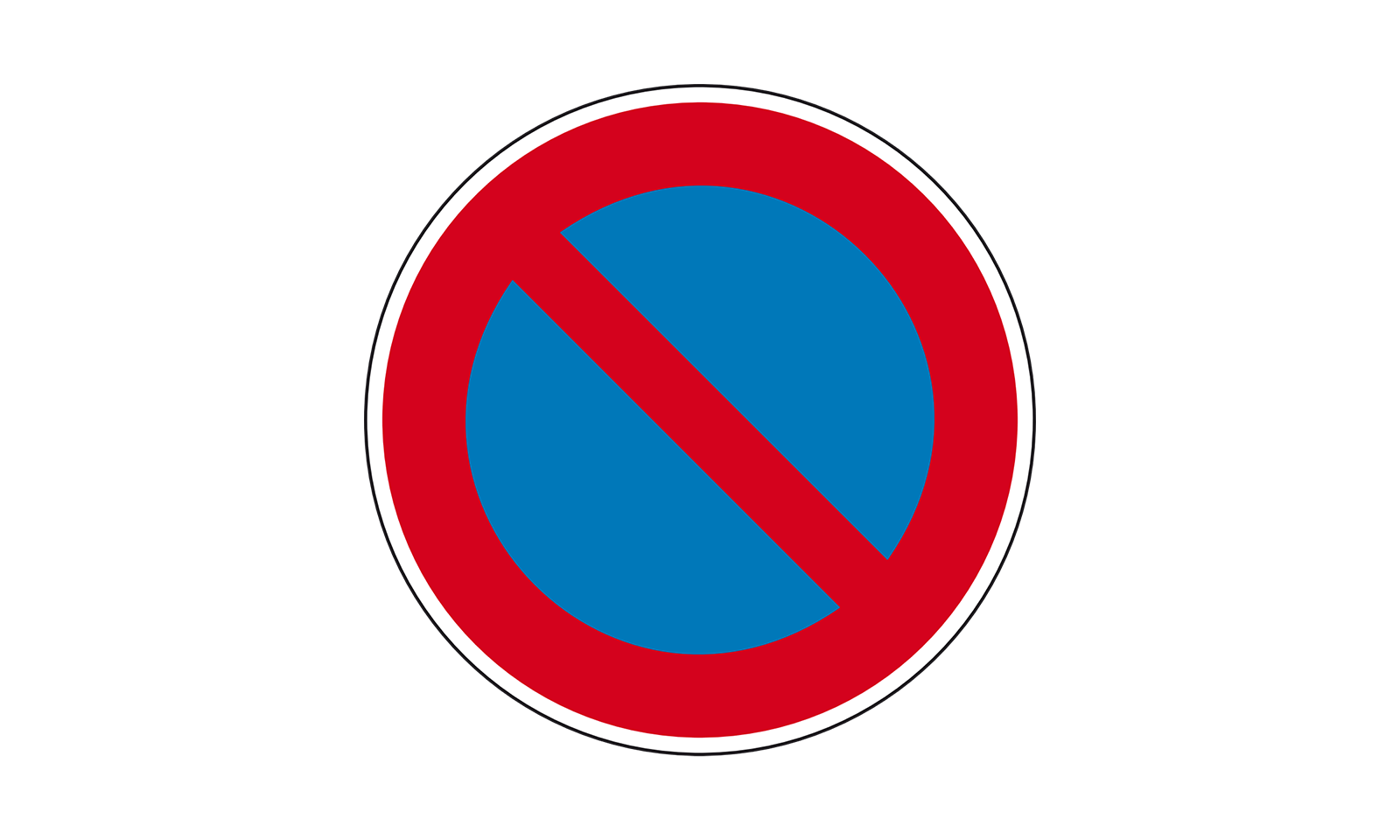 Ein absolutes Halteverbot ist durch das rote Halteverbotsschild (siehe Abbildung) angezeigt. Hier darfst du wirklich gar nicht anhalten, außer bei einem Notfall oder wegen des Verkehrs (Stau, Unfall, etc.). Es ist also streng verboten, selbst für ein paar Sekunden zu stoppen, um jemanden rauszulassen oder einzusteigen.